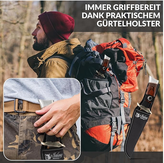 ایمن برای استفاده - از داخل، غلاف پارچهای تقویت شده با بست و حلقه را میتوان به راحتی به کمربند شلوار متصل کرد. ساختار تیزکن مخفی (قطعه پیوسته فولاد ضد زنگ از نوک تا انتهای دسته) به طور ویژه محکم، پایدار و مقاوم است.