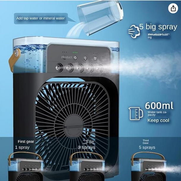6. در نتیجه، اگر به دنبال یک کولر گازی قابل حمل قابل اعتماد و راحت هستید، پنکه مینی فراست انتخاب مناسبی برای شماست. این محصول مجهز به عملکرد مه پاش برای تازه کردن هوا، عملکرد کمصدا با سه سرعت قابل تنظیم، حالت نوسانی، باتریهای قابل شارژ و کنترل از راه دور است و برای استفاده در سفر، کمپینگ، صندلی ماشین، اتاق خواب، محل کار و هر جایی که میروید عالی است. این پنکه رومیزی جدید را از دست ندهید؛